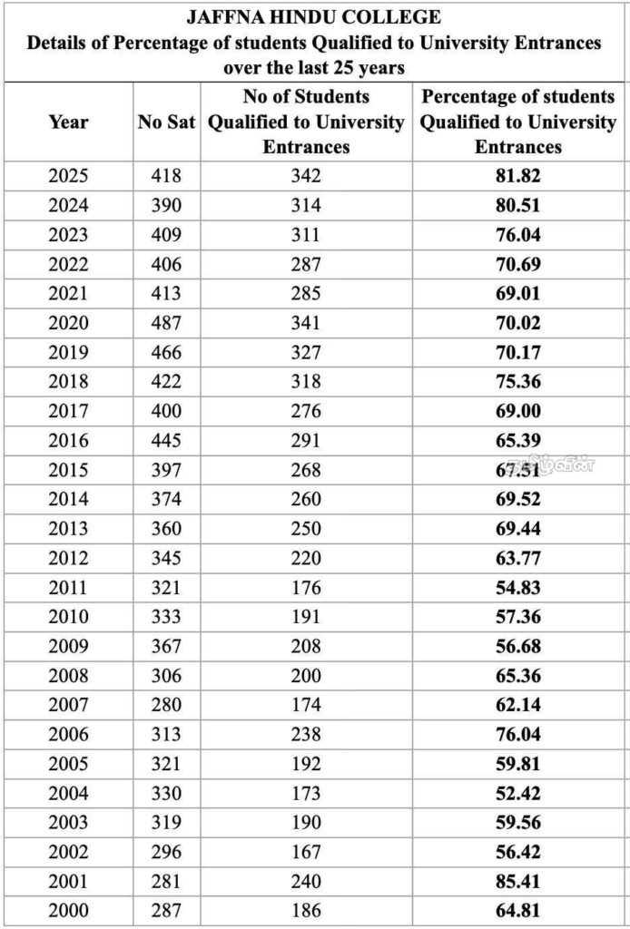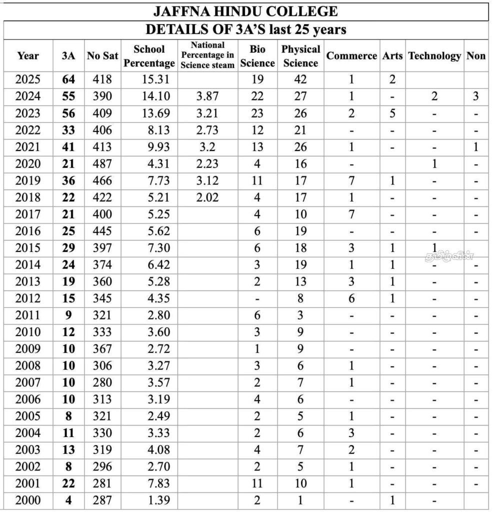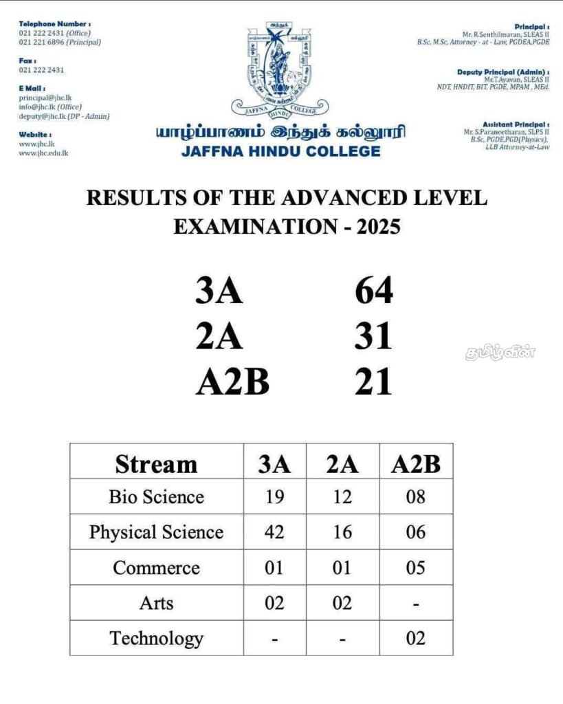 2025ஆம் ஆண்டுக்கான கல்விப் பொதுத்தராதர உயர்தரப் பரீட்சை பெறுபேறுகள் நேற்றைய தினம் (31.03.2026) வெளியானதைத் தொடர்ந்து, யாழ்ப்பாணம் இந்துக் கல்லூரி மாணவர்களின் பெறுபேறுகளும் வெளியாகியுள்ளன.