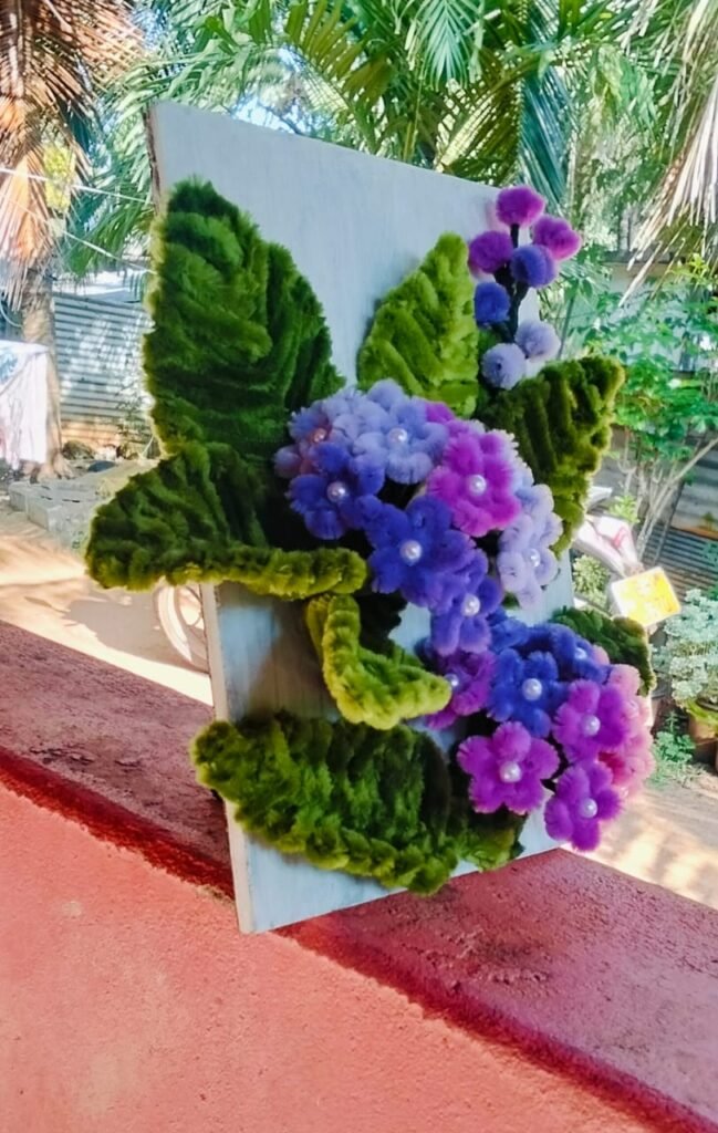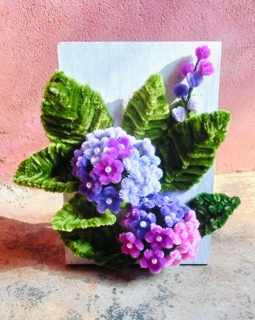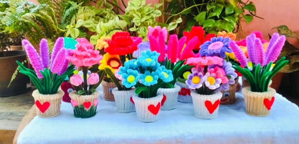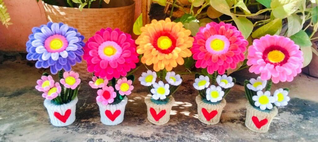 - மென்மையான கம்பளி/பைப் கிளீனர் கொண்டு செய்யப்பட்ட பூக்கள்
